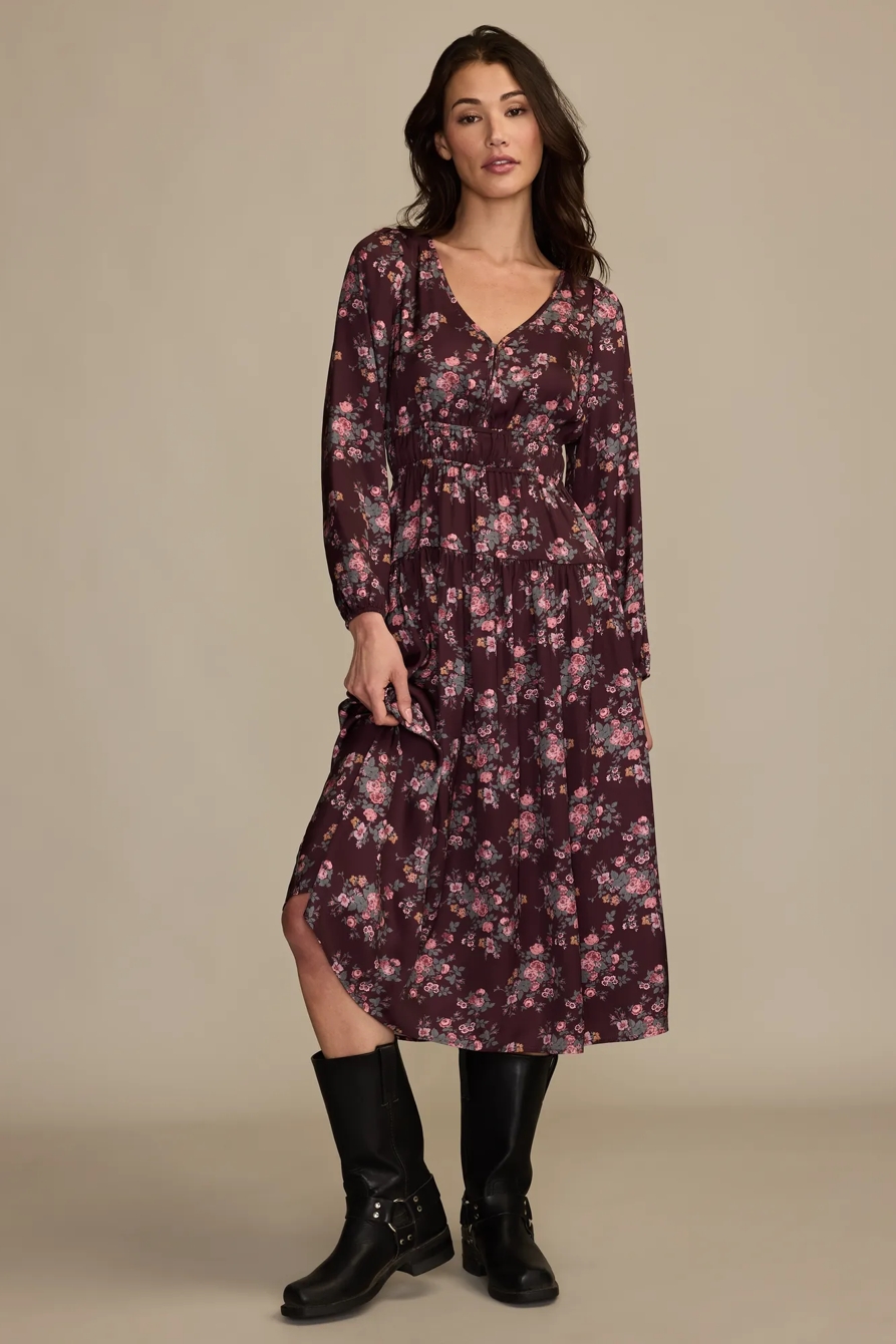long sleeve floral midi dress