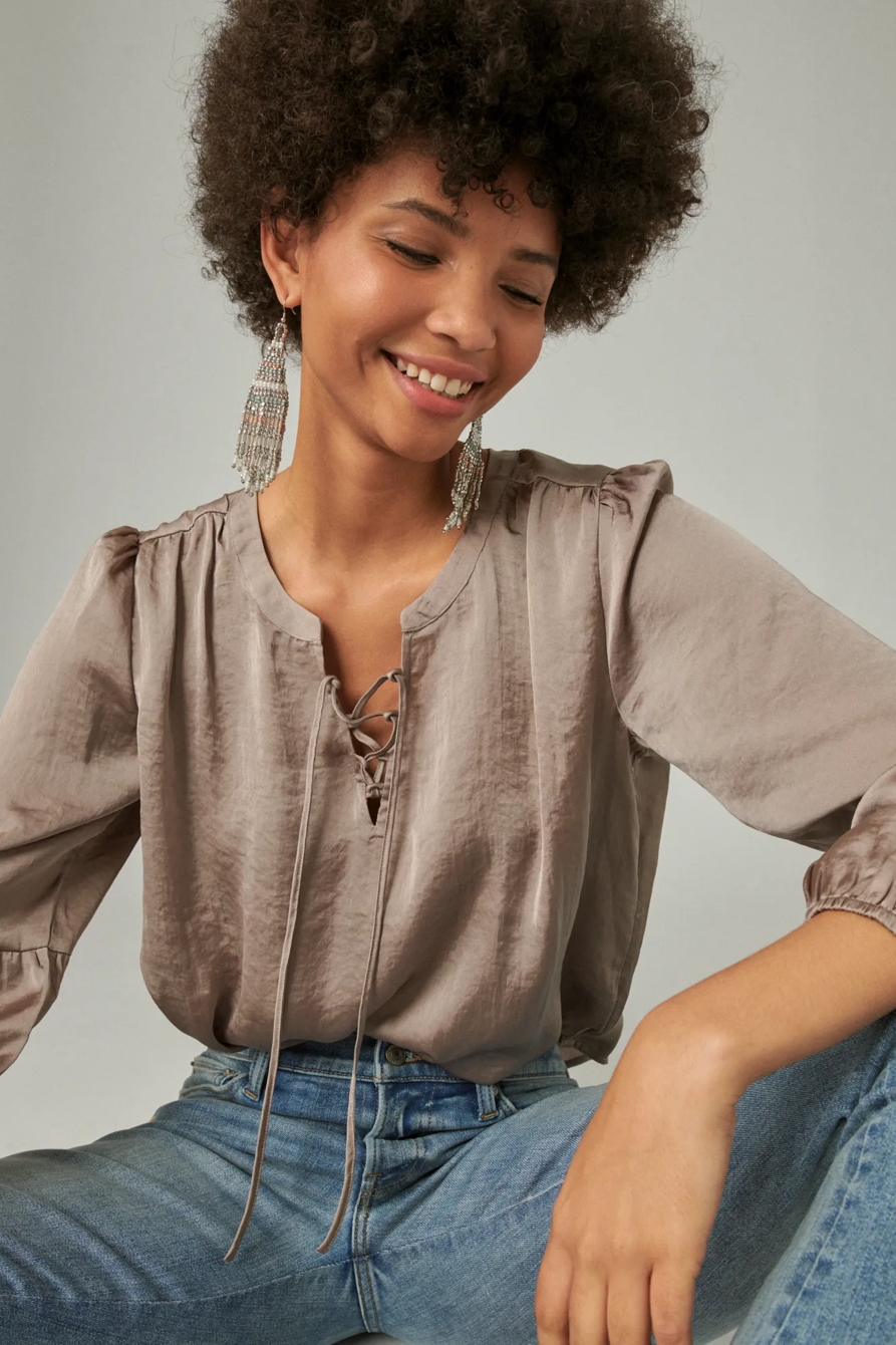 long sleeve lace up blouse