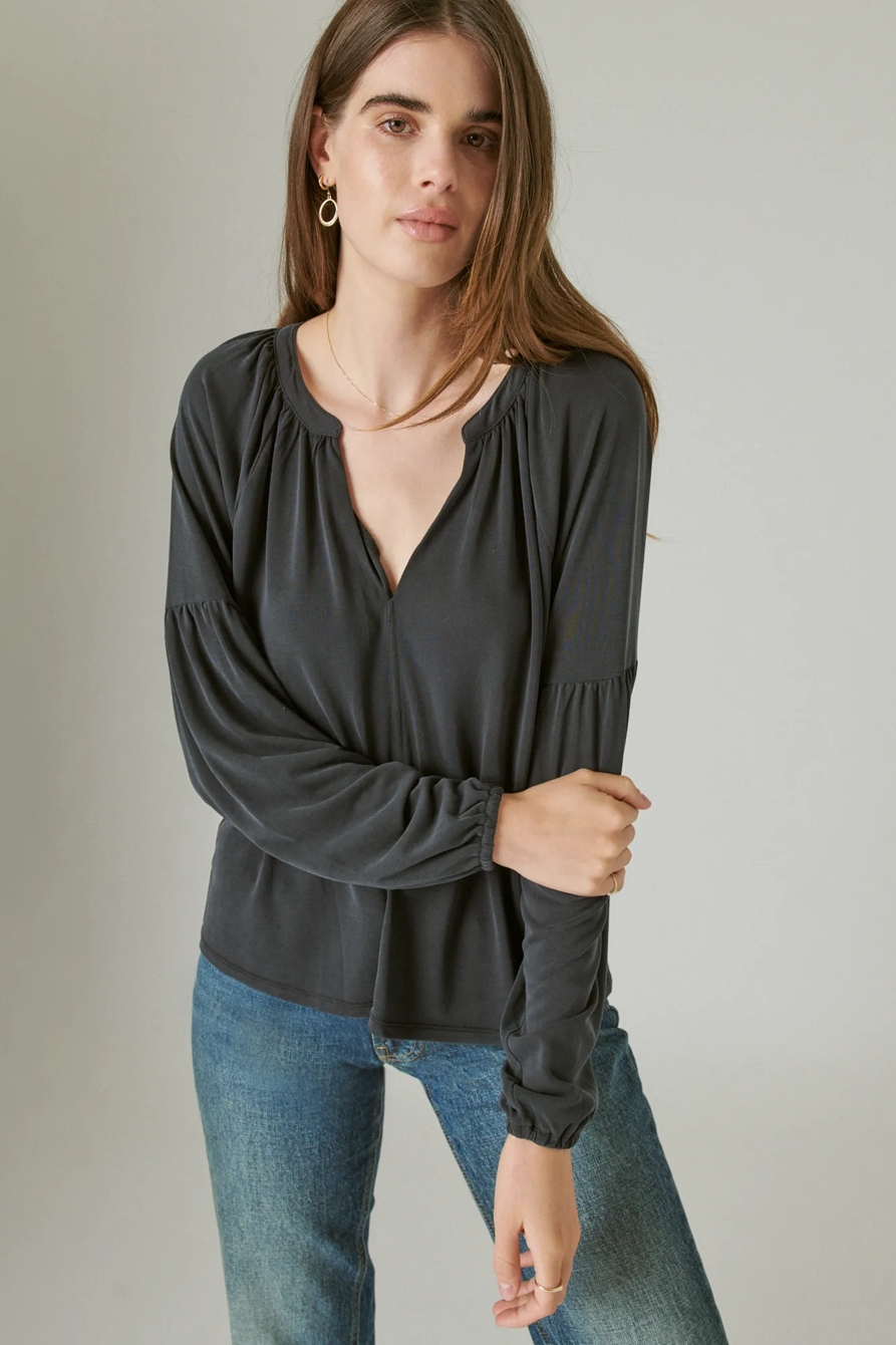 long sleeve notched neck sandwash top