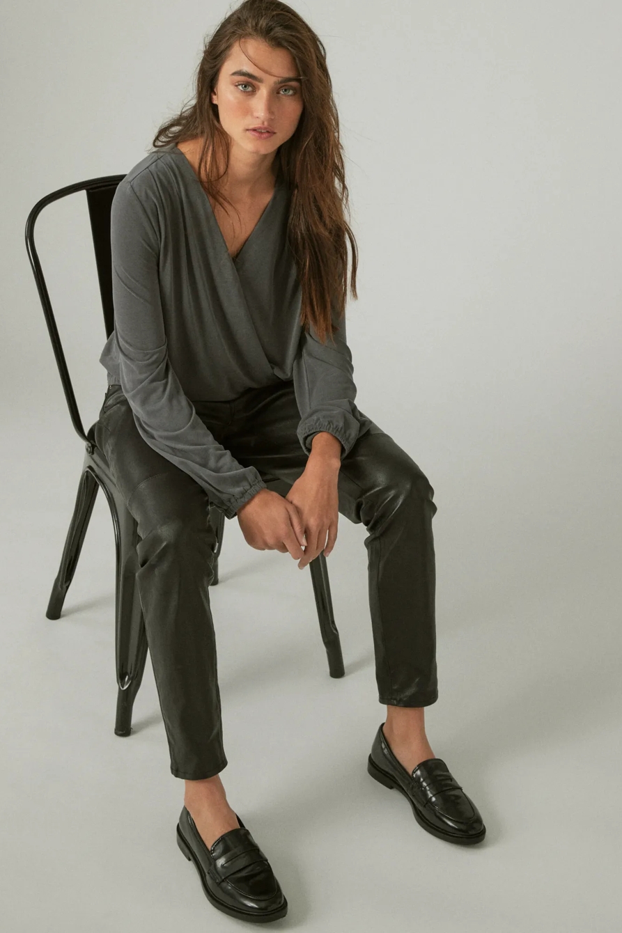 long sleeve sandwash wrap top