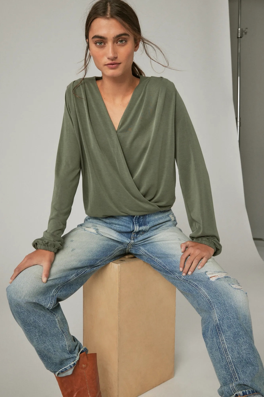 long sleeve sandwash wrap top
