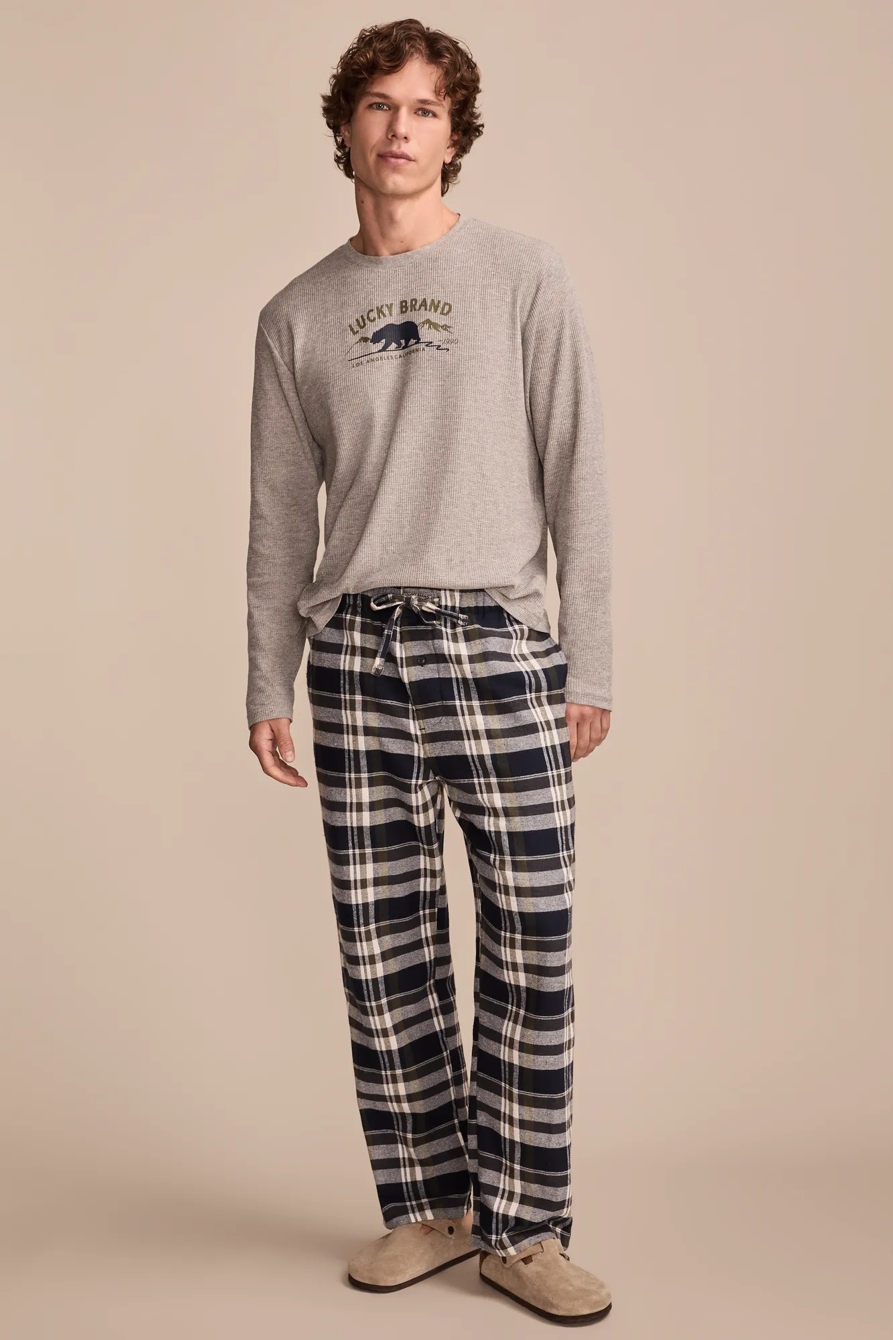 long sleeve thermal crew & flannel pant gift set