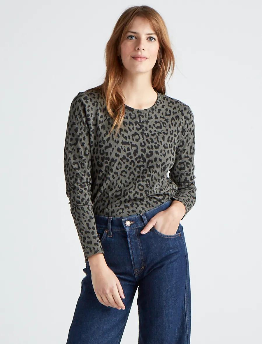 ls crew neck leopard tee