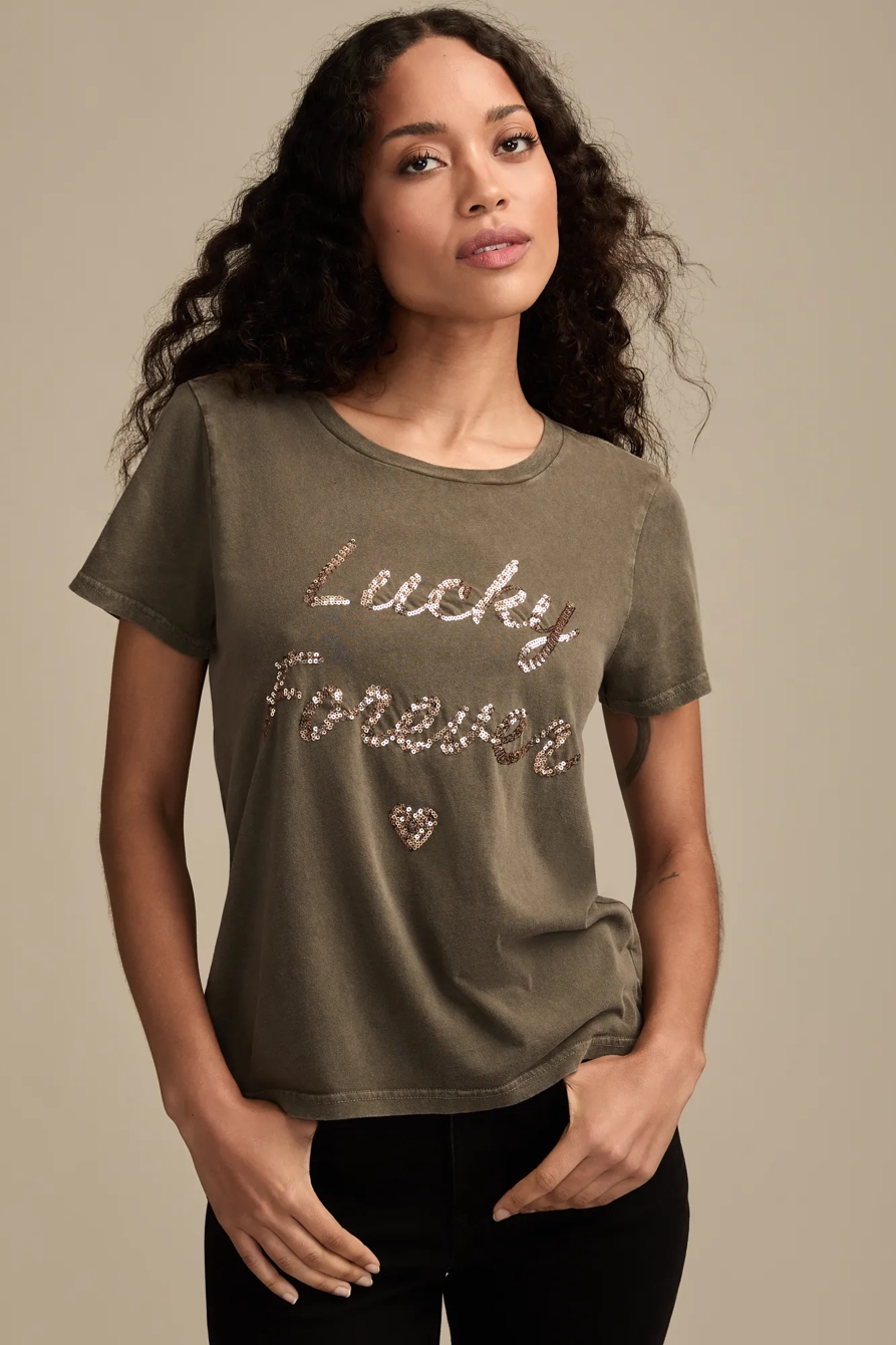 lucky forever sequin classic crew