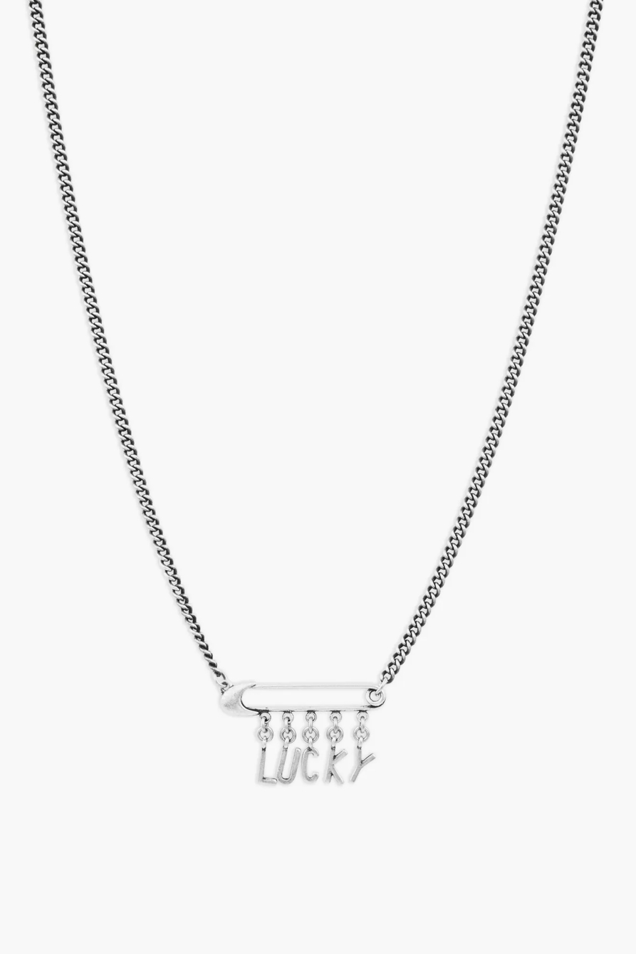 lucky safety pin charm necklace