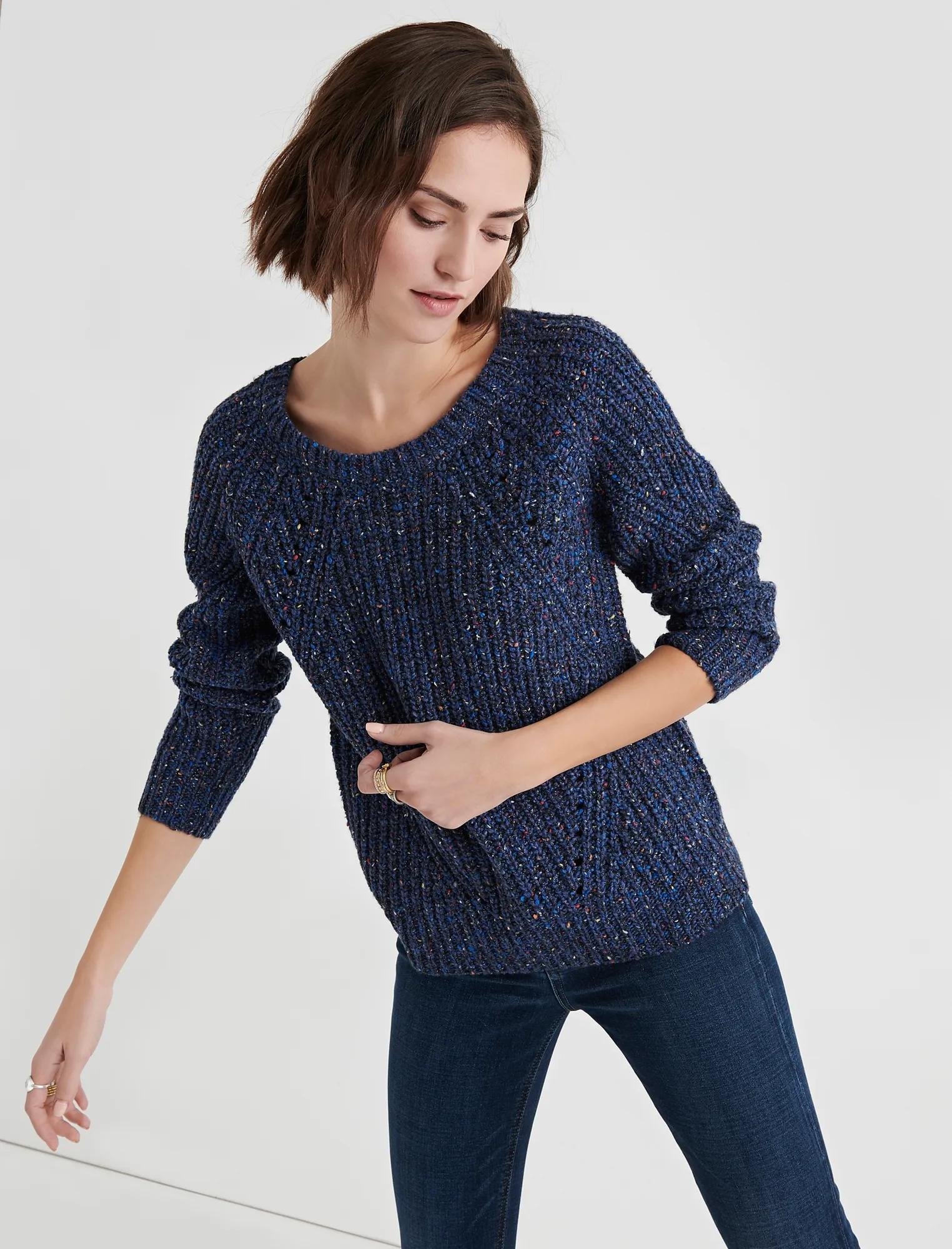 marled crew neck pointelle sweater