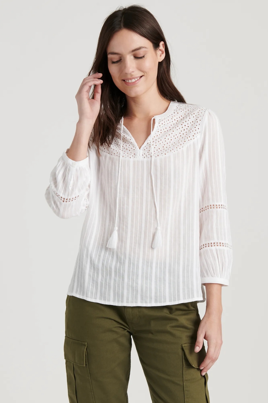 marly eyelet peasant top