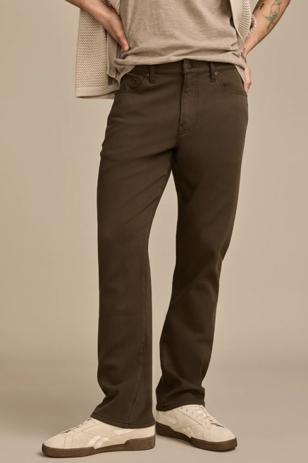 Browse this large and impressive selection at Lucky Brand and discover the best pants for men online or anywhere. Whether you're up-to-the-minute, or just like to look good, you need a few adaptable bottoms in your wardrobe. In this line, you'll find clothing that's perfect for that summer wedding, leading a boardroom meeting at work, or picnicking in the park with that special someone. These nice pants for men offer a tasteful, modern slim cut, and provide a comfortable fit. Manufactured from choice fabrics, they're breathable, soft to the touch, and highly durable. Choose from a diverse collection that includes popular chino pants, suit dress pants that are ideal for wear with a matching blazer, linen pants for warm days, and of course, a massive selection of denim jeans. From casual wear and loungewear, to garments that will help you look dashing and handsome for a special occasion, there's something for everyone in this line. Don't waste time in the morning trying to figure out what to wear. With guys' pants from Lucky Brand and your favorite shirts, you'll find a winning combination in no time. Get out the door quickly and catch your train in style with these brilliant clothes.