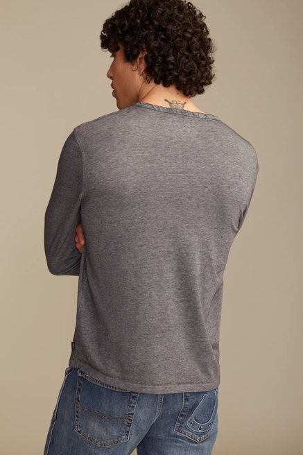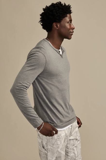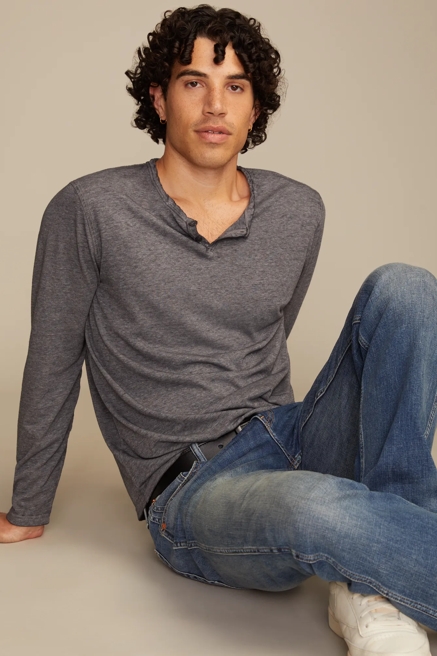 - Throw on a Henley with vintage-wash jeans for a reliably understated look for any season.