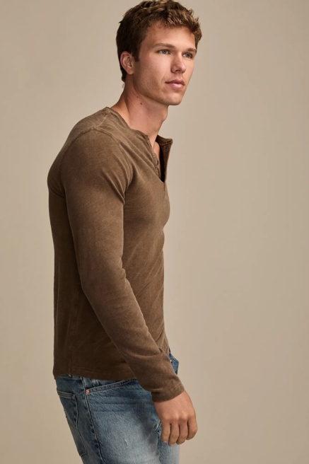- Throw on a Henley with vintage-wash jeans for a reliably understated look for any season.