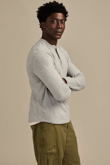 - Throw on a Henley with vintage-wash jeans for a reliably understated look for any season.