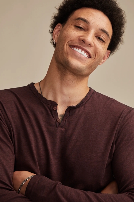 - Throw on a Henley with vintage-wash jeans for a reliably understated look for any season.