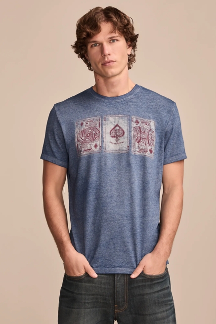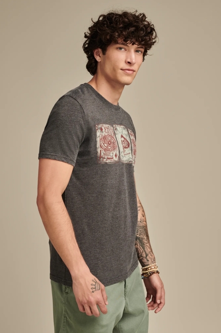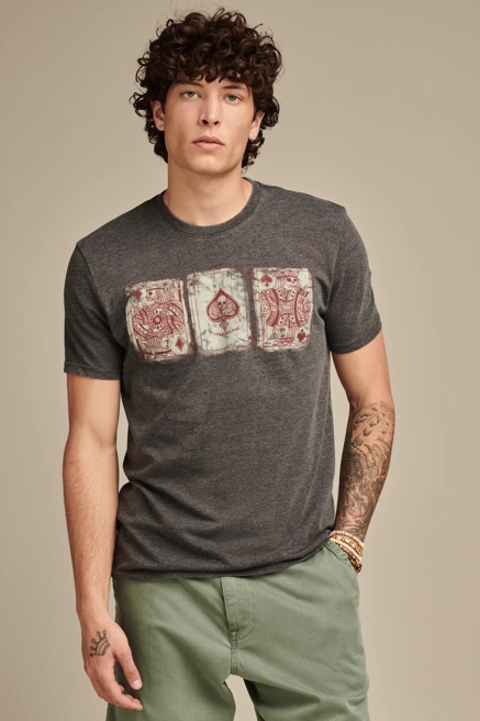 Complete your casual wardrobe with pieces from the graphic tees men selection from Lucky Brand. This authentic collection features a range of well-made, expertly designed and always stylish graphic tees just waiting for you to explore. Build a versatile wardrobe filled with options for any time of year with tees in a range of fits, colors, patterns and more. Whether you're shopping for a new tee just for fun, a gift for a special guy in your life, or an updated look for your wardrobe, these graphic tees offer unbeatable Americana appeal. Expand the possibilities of your everyday wardrobe with guy's graphic tees from Lucky Brand.