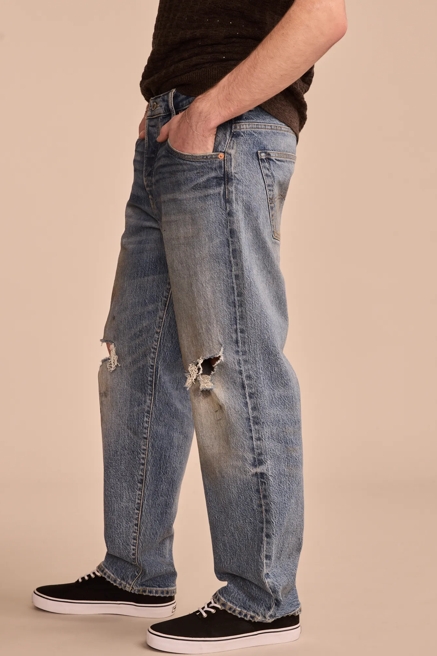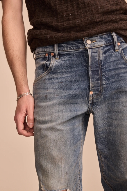 While the tapered cut is a universal style, there are different fits that feature tapered legs. Our athletic fit jeans with a taper are constructed to include a bit more room in the thigh region. They’re especially comfortable for guys with more muscular legs, but they offer the flexibility you’d want when participating in sports. Our vintage loose-fit jeans are built with a very relaxed fit in the hips, thighs and all the way down through the taper. They look more like straight-leg jeans in many ways. Keep an eye on men’s new arrivals to see what other fits we’re featuring with tapered legs.