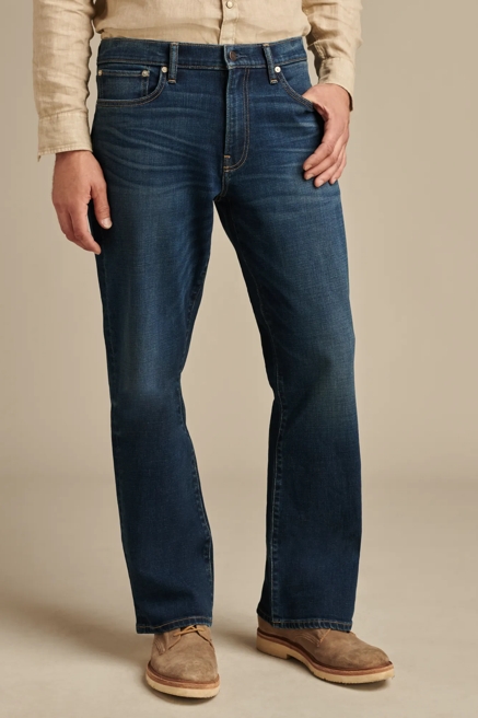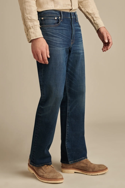 Equal parts rugged and refined, the versatile bootcut jeans options from Lucky are prime examples of our laid-back spirit and dedication to authenticity. Discover premium denim with bootcut jeans for men from Lucky Brand. Men's bootcut jeans embody classic American style and come in original washes, such as Slate — a light blue color that's a staple in every denim lover's collection — and Live Oak, a popular dark blue rinse.