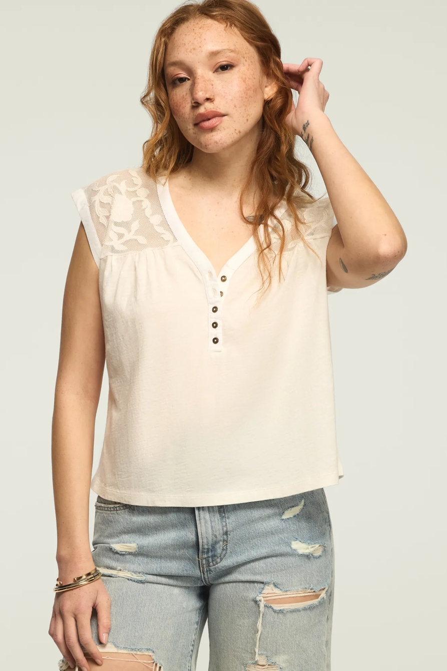 mesh embroidered yoke tee