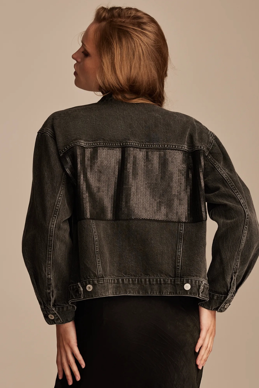 metallic denim trucker jacket