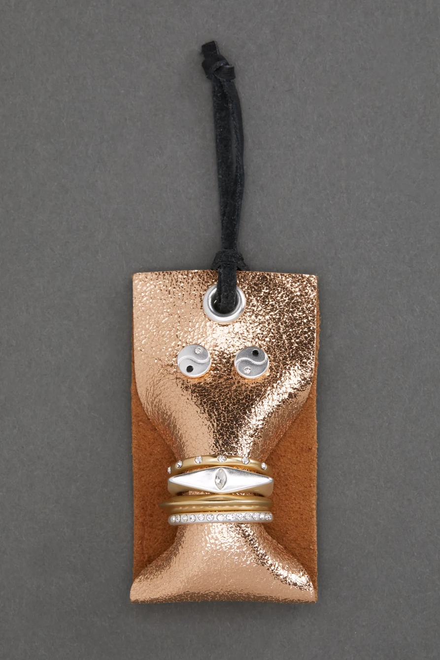 metallic leather earring ring set