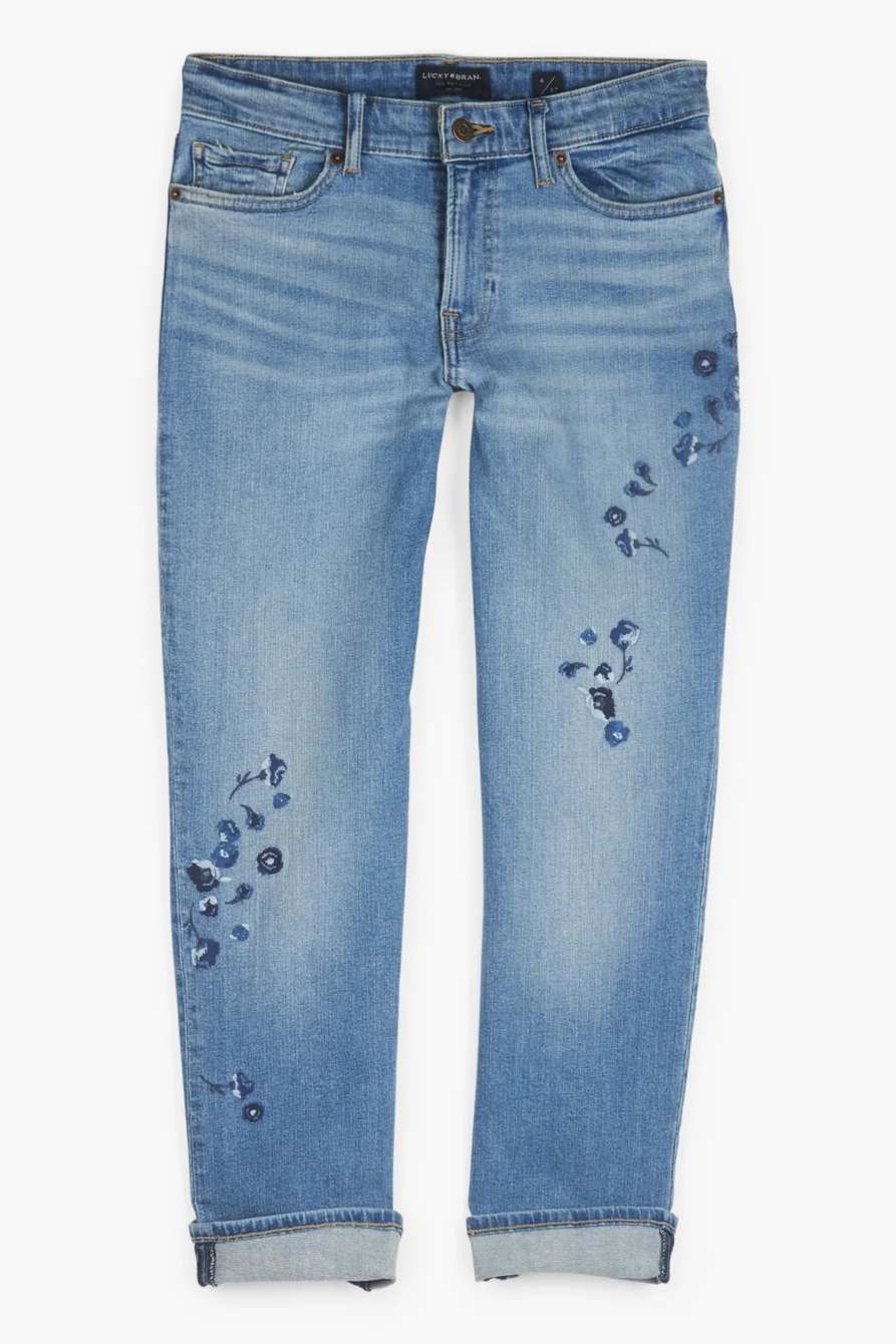mid rise sweet crop embroidered jean