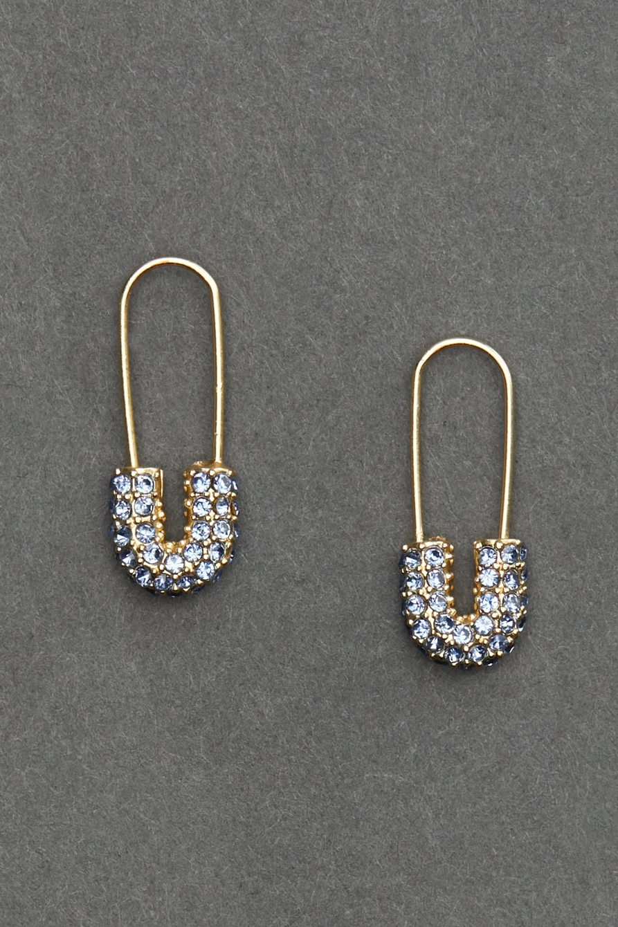 mini blue pave safety pin earring