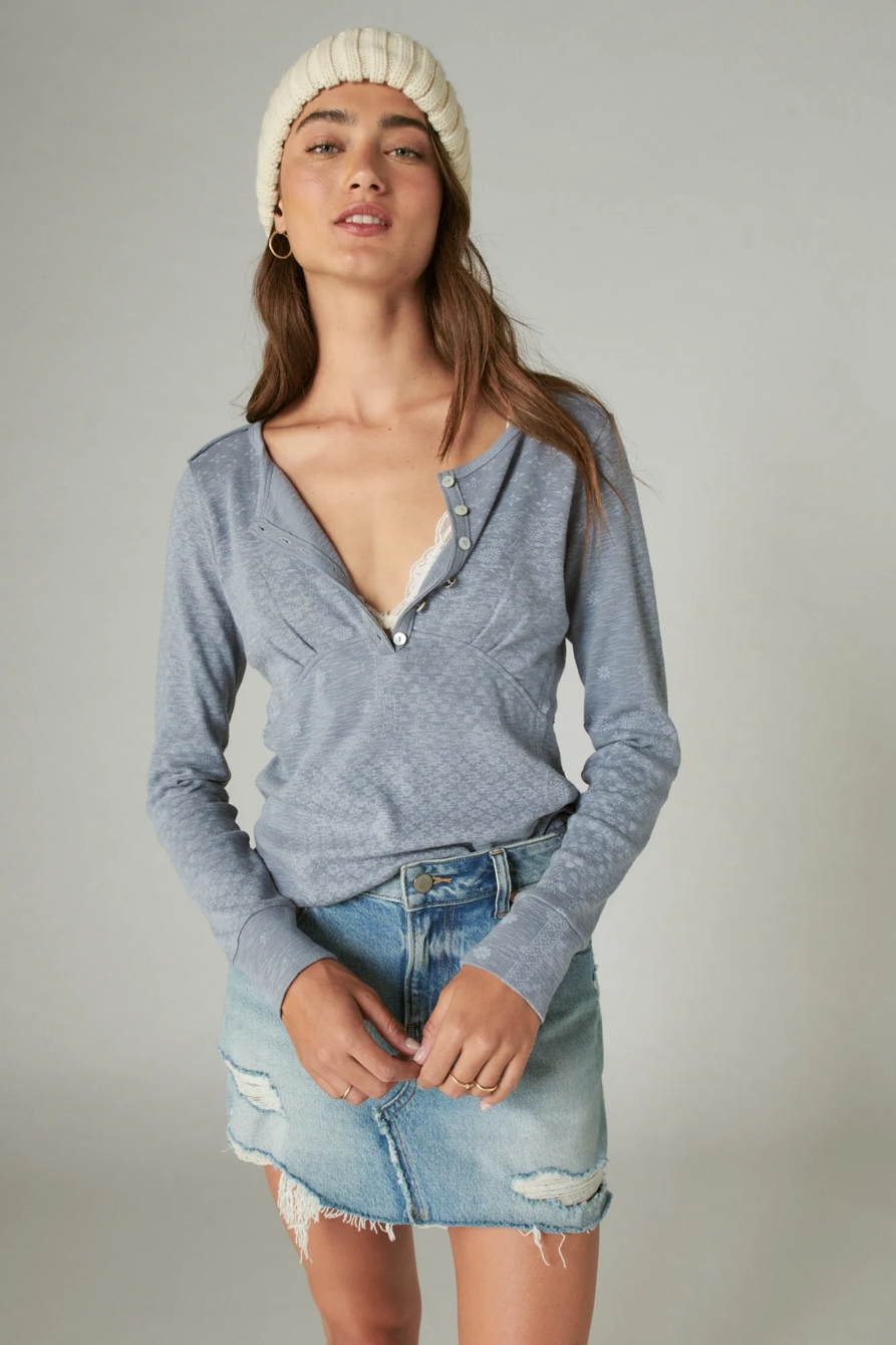mix matched printed henley