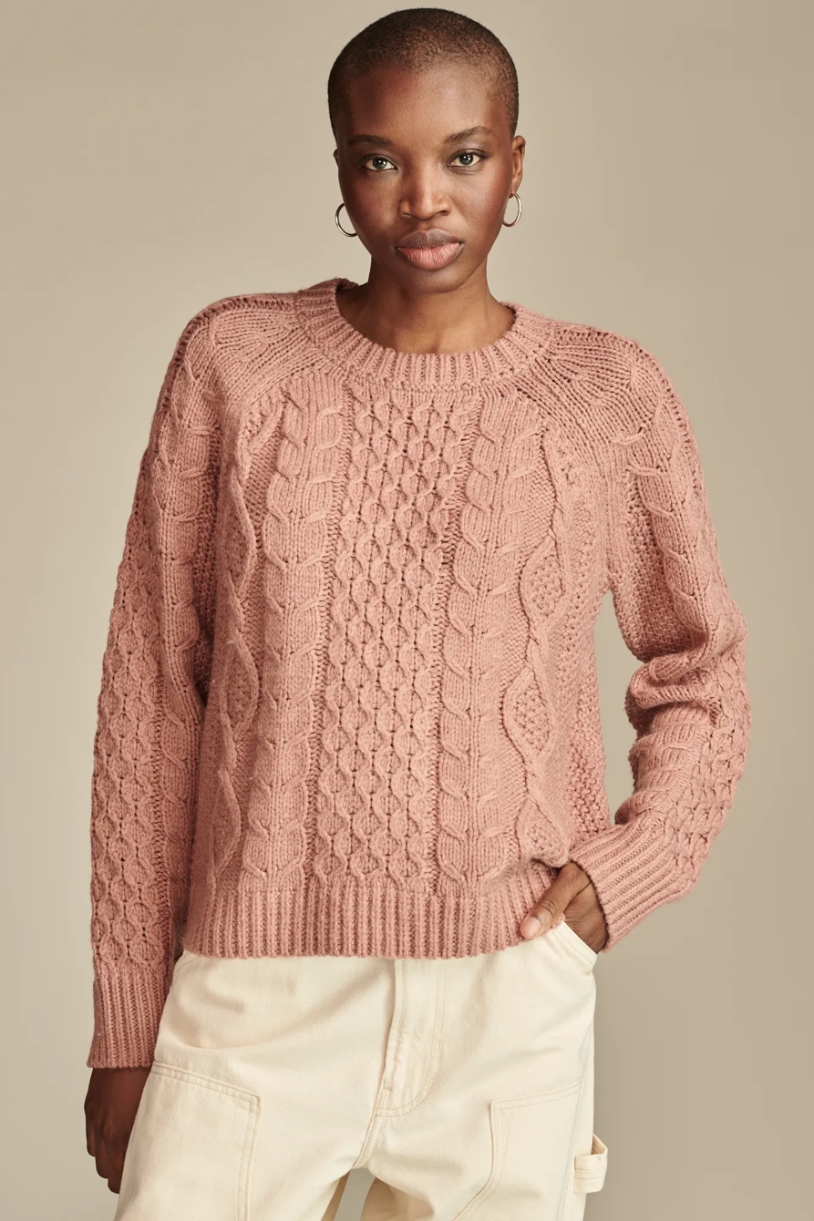 mixed cable crew pullover sweater