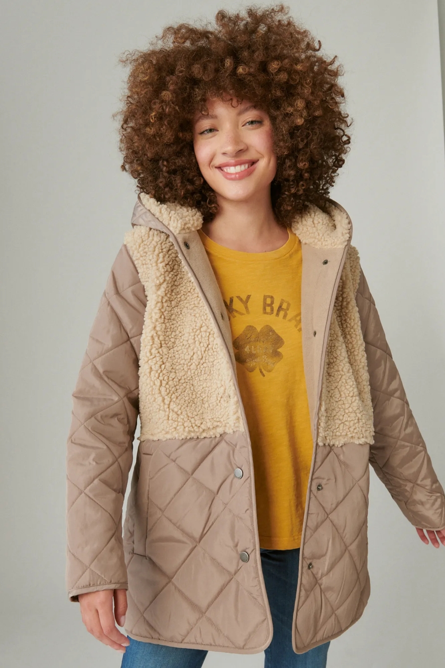 mixed media quilted faux shearling jacket