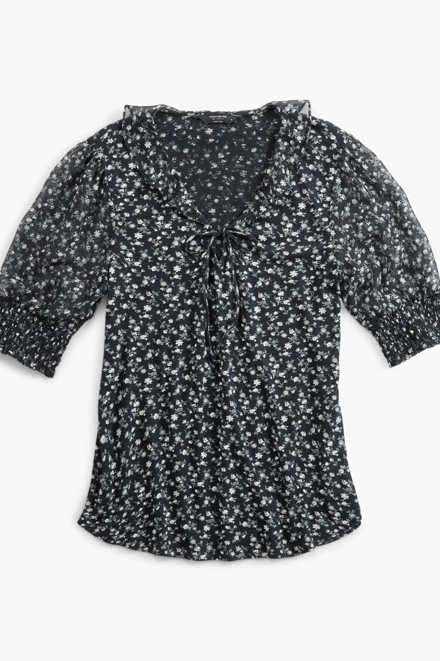 mixed media v-neck flutter top