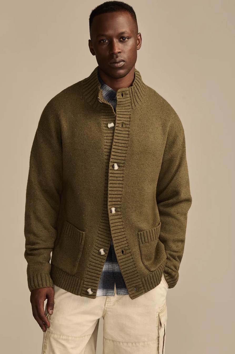 mock neck button cardigan