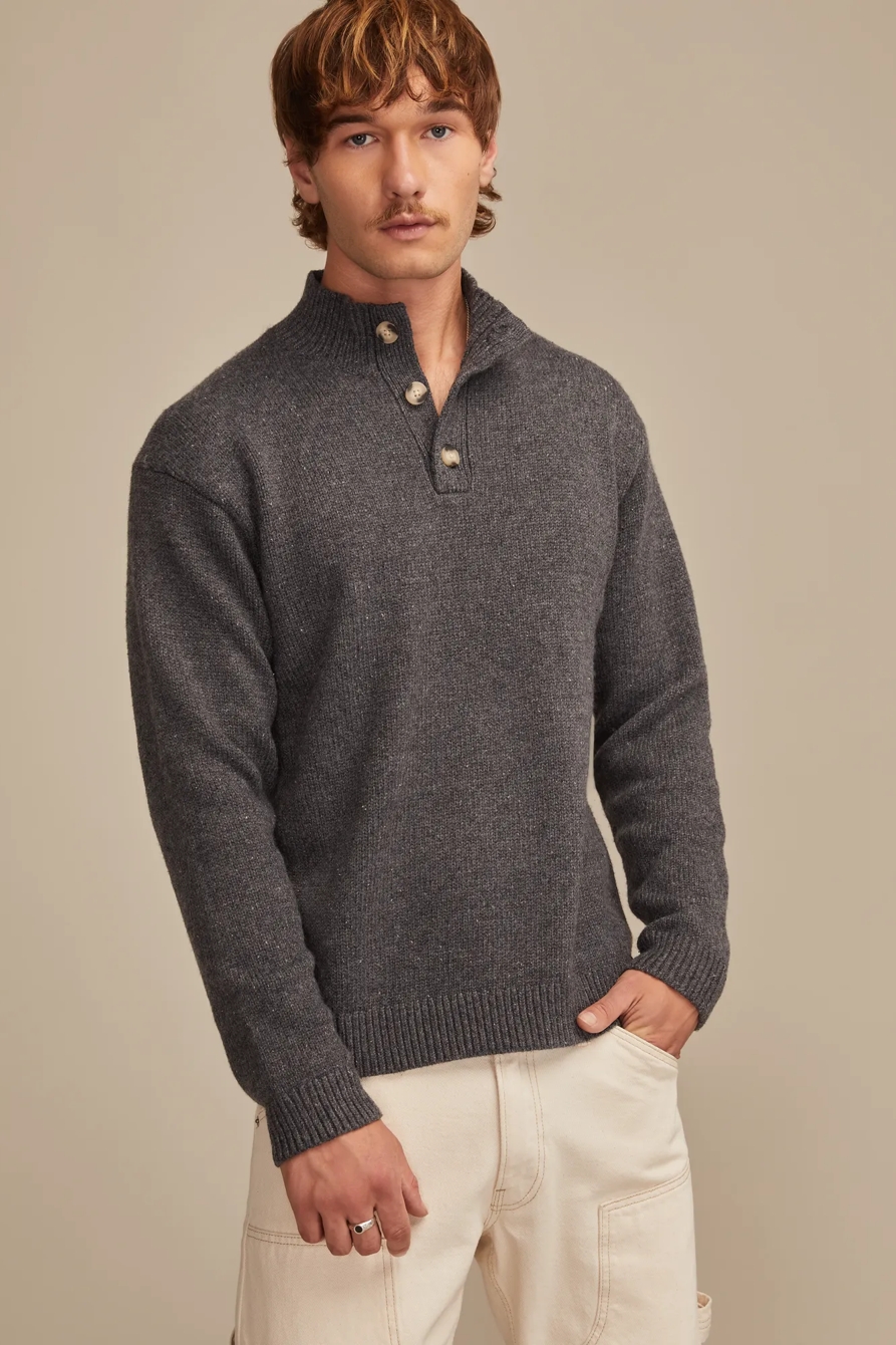 mock neck henley sweater
