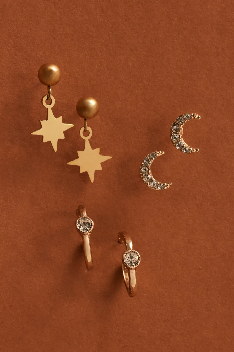 moon and star earring set