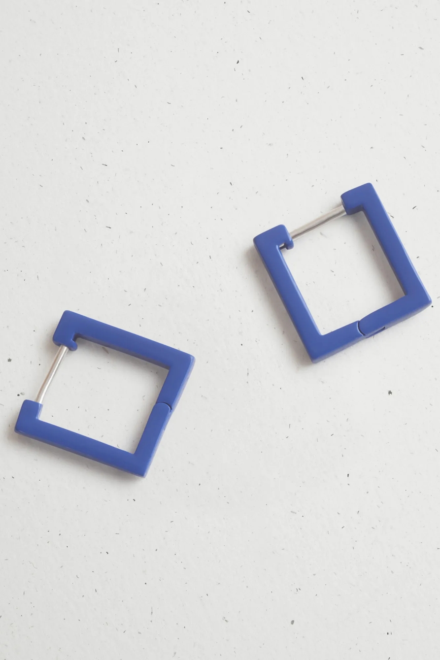 navy mini square hoop earring