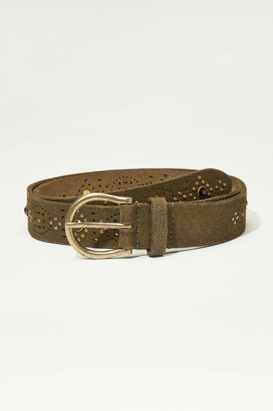 olive suede punch and rivet belt