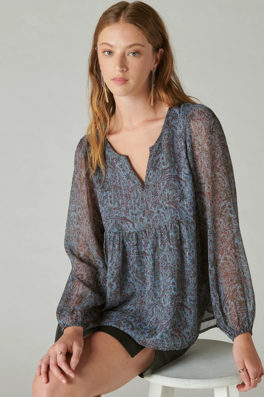open neck printed peasant top
