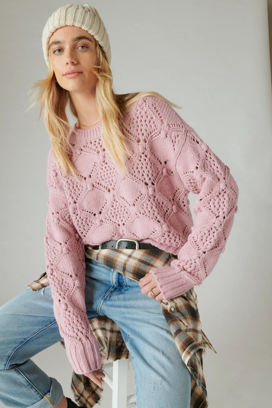 open stitch pullover sweater