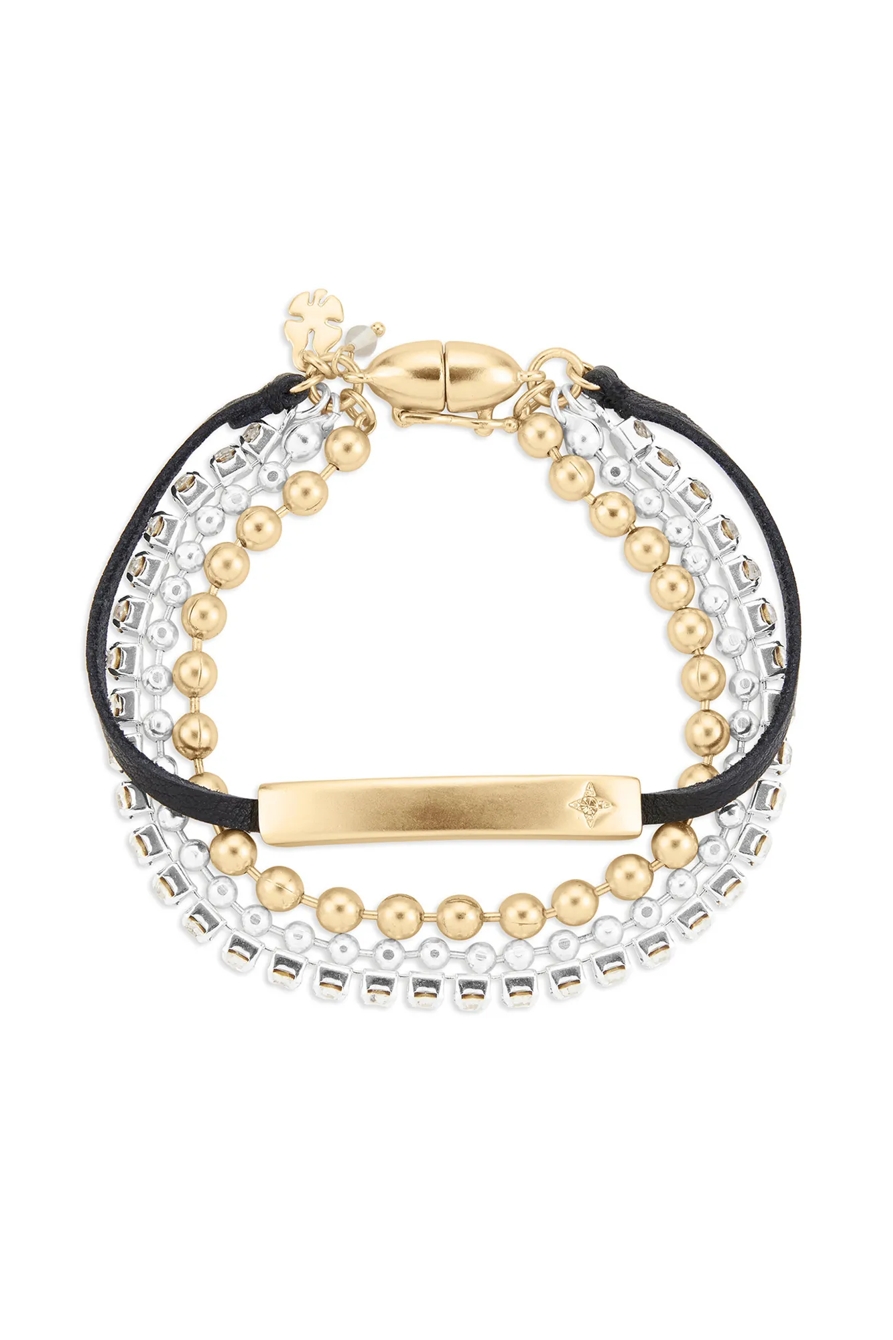 pave and leather layer bracelet