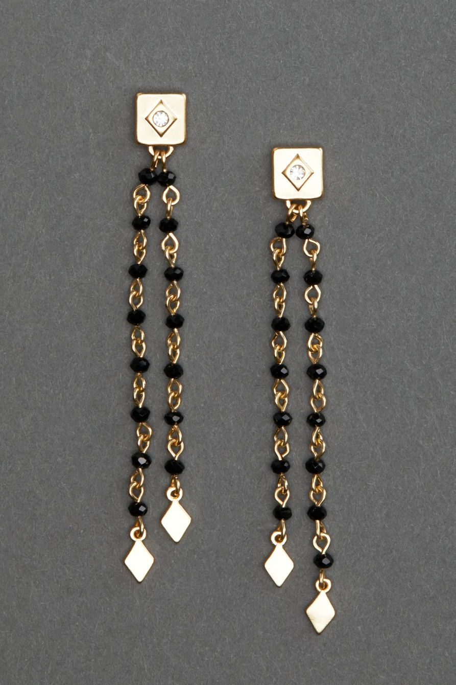 pave stud beaded linear strand earring
