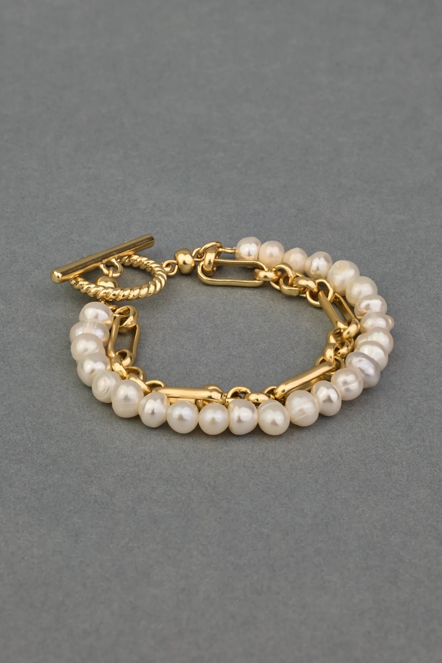 pearl chain layer toggle bracelet