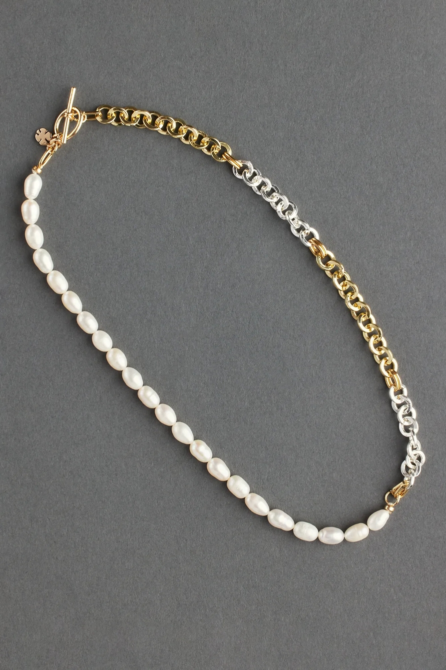 pearl chain mix collar necklace