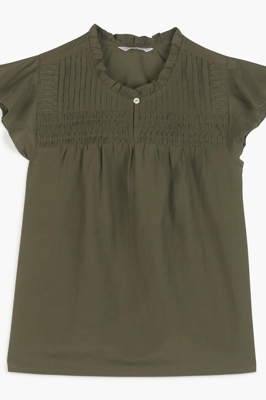 pintuck flutter sleeve top