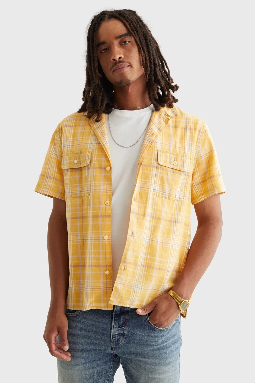 plaid auto short sleeve shirt