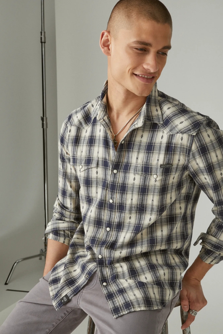 plaid dobby western long sleeve shirt