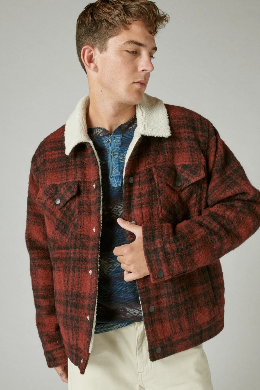 plaid faux shearling lined trucker