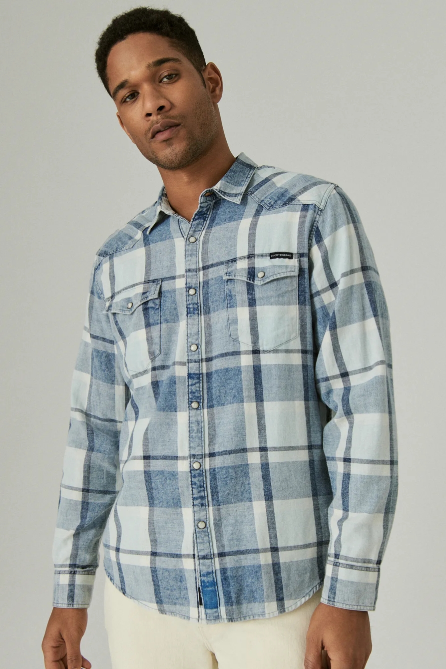 plaid indigo long sleeve western shirt