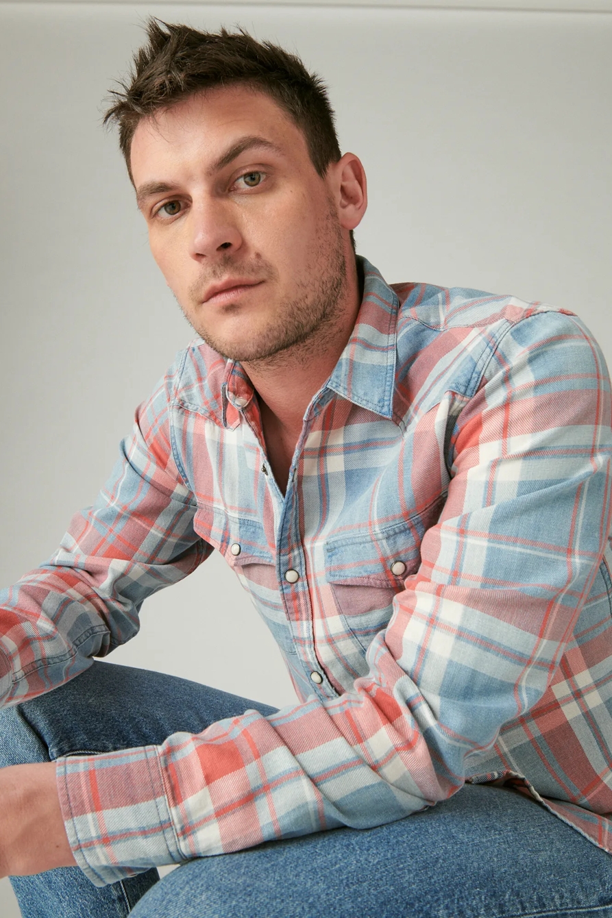 plaid indigo long sleeve western shirt