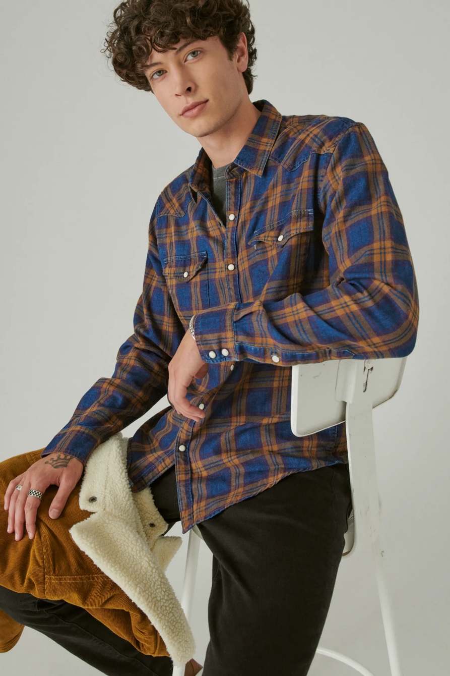 plaid indigo western long sleeve shirt