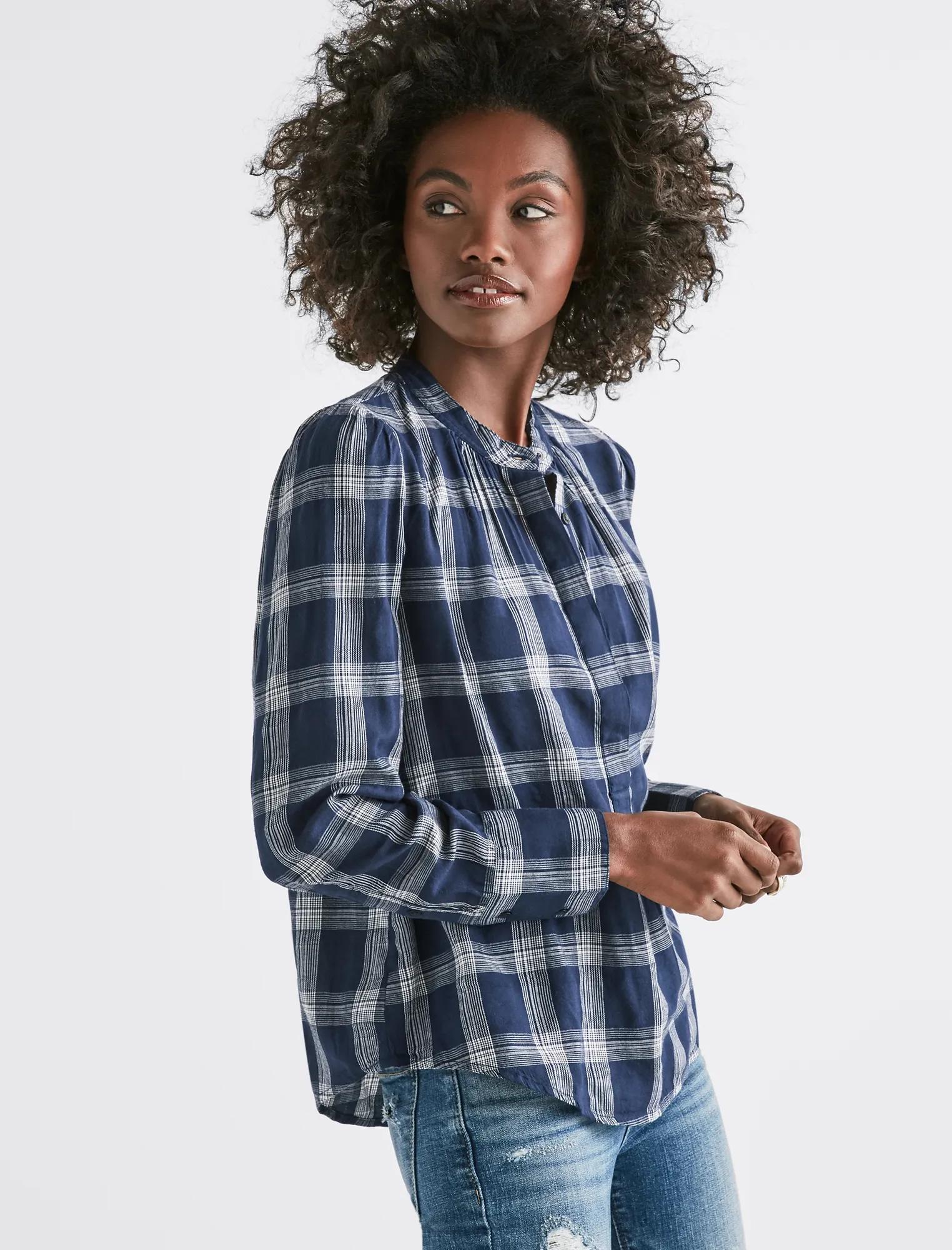 plaid puff sleeve shirt