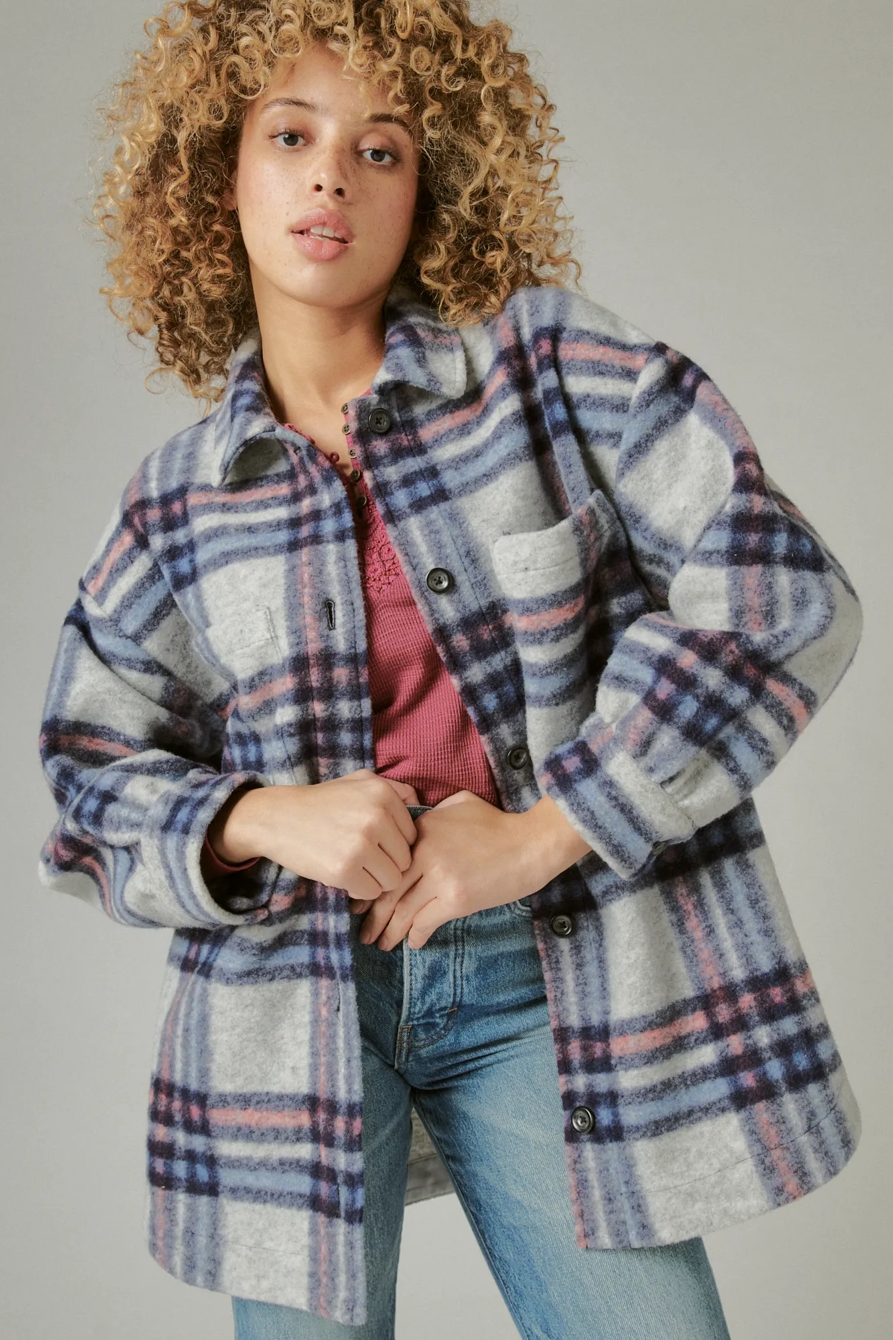 plaid wool long shacket