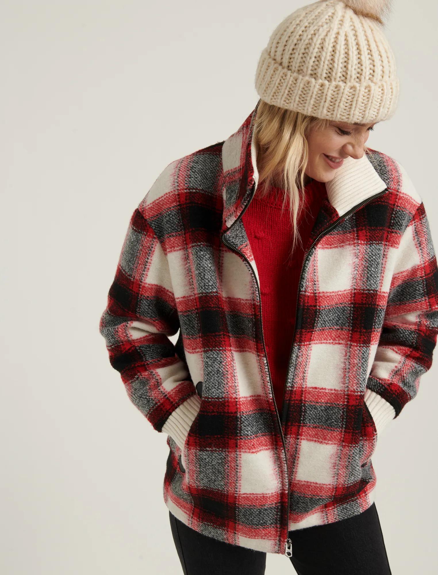 plaid wool zip jacket
