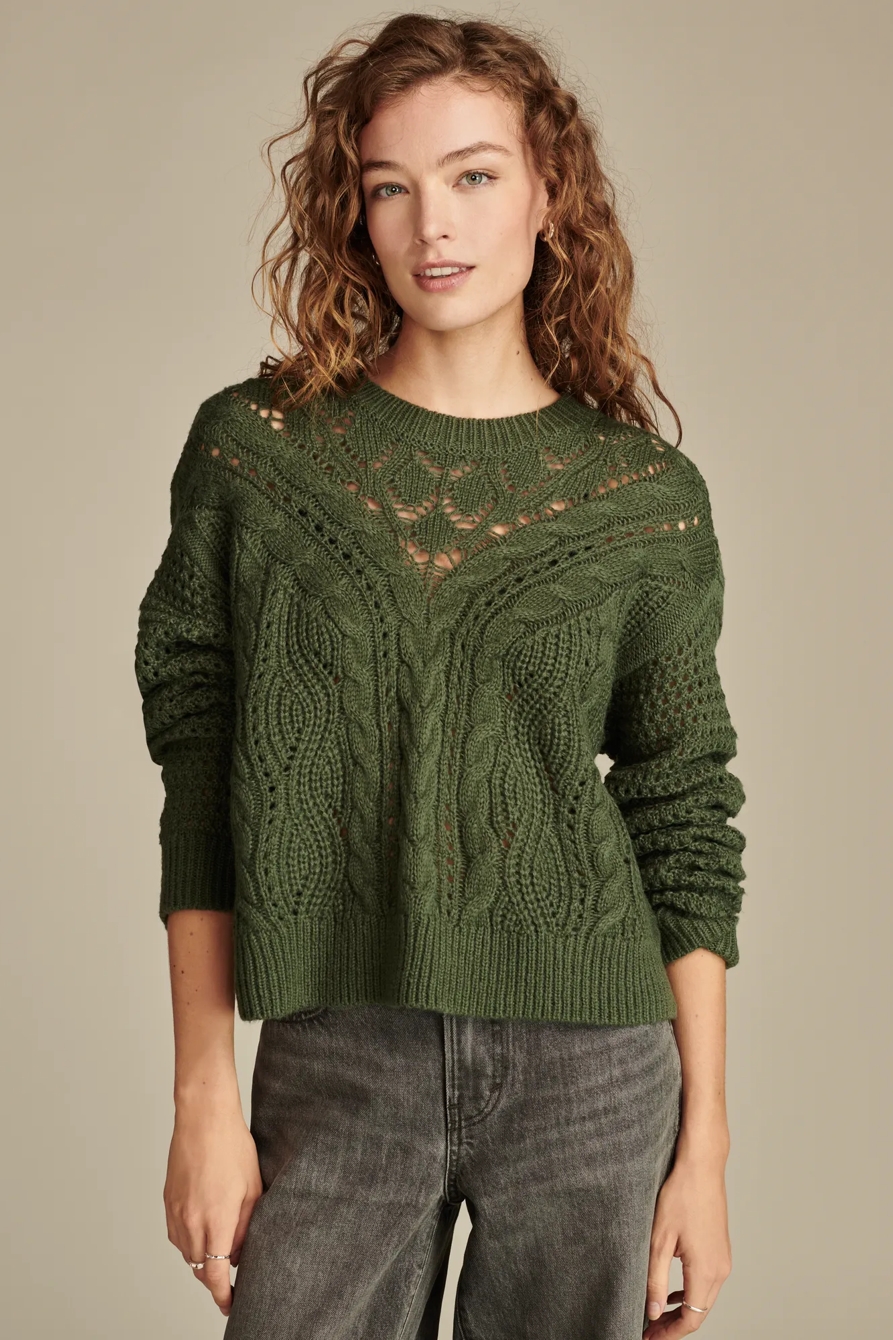 pointelle crew neck sweater